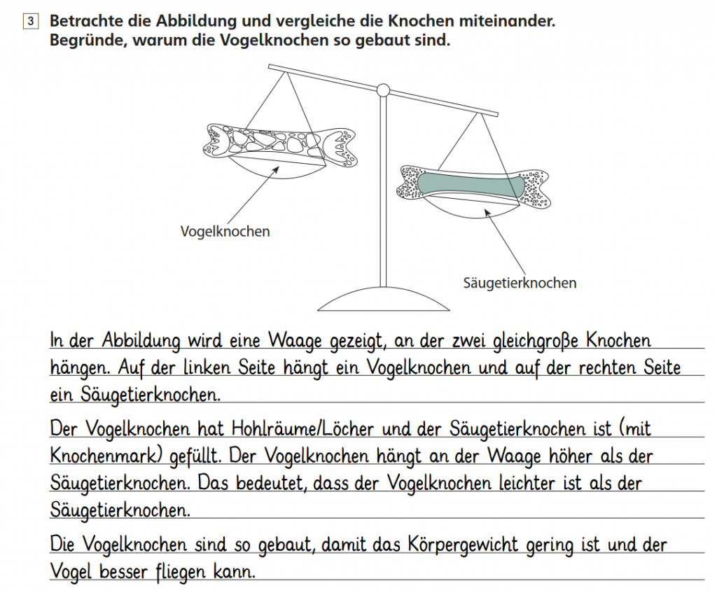 (Du solltest den Vogelknochen erkennen und seine Bauweise erklären können; wie an der Tafel erarbeitet->)